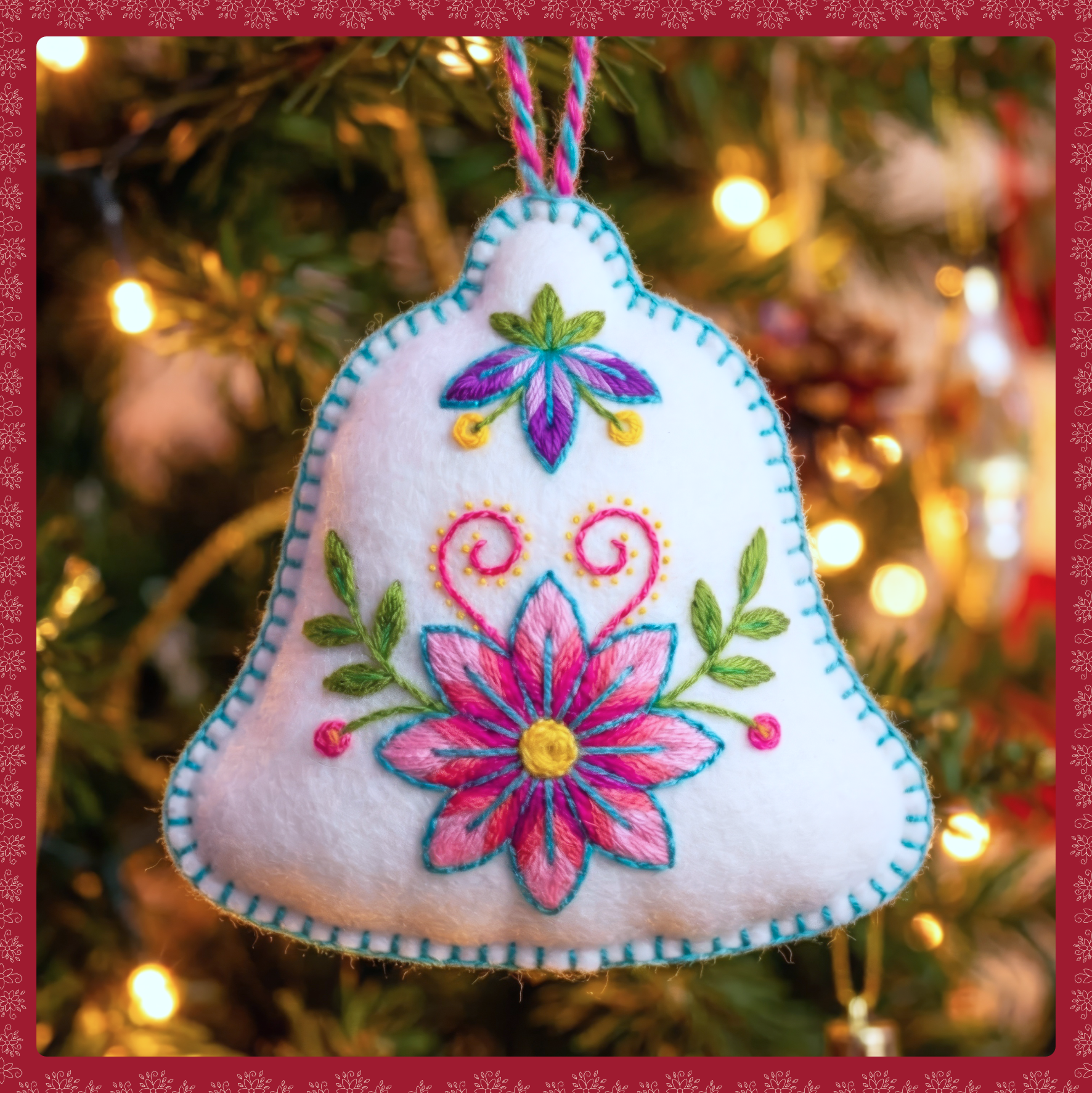 Incluye: Diseño de Colgante de Campana Navideña para bordar, indicaciones de bordado, sugerencia de color del diseño e imagen referencial.